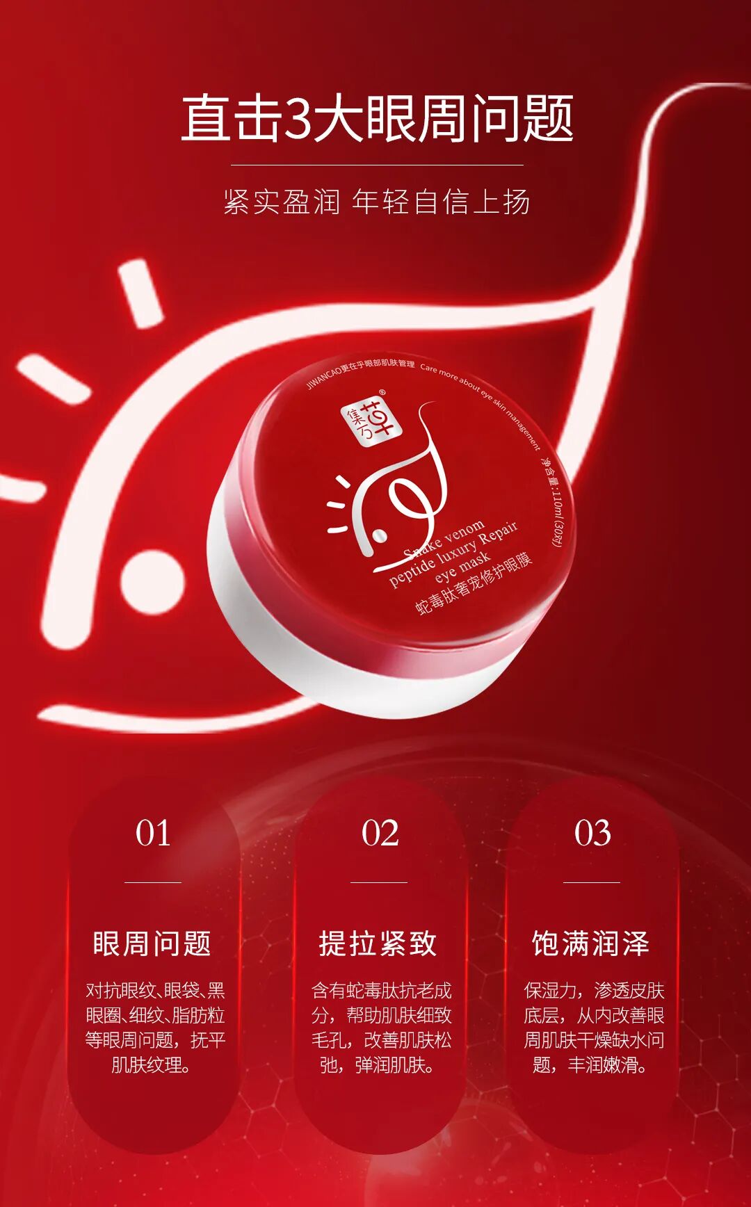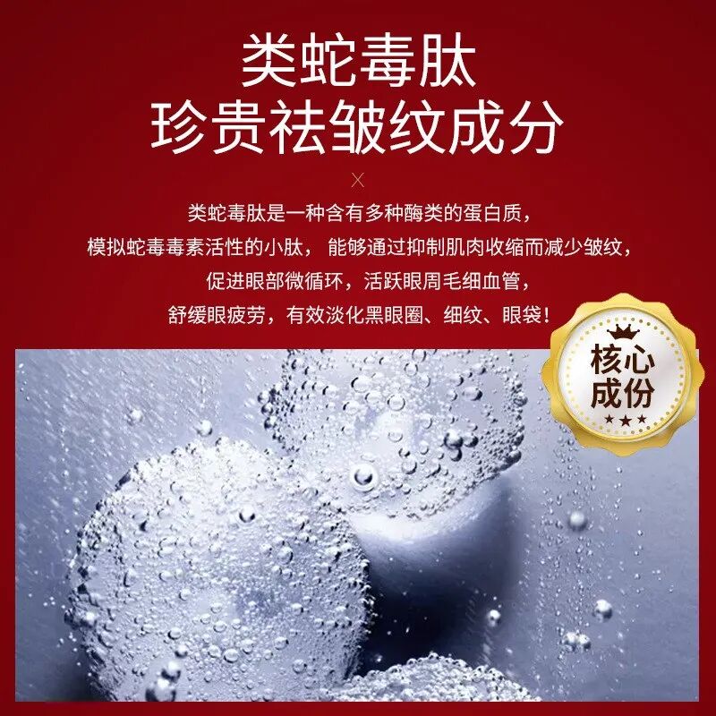 而赛美在此基础上,再度深究功效成分,在黄金多肽组合上再添加类蛇毒活性肽,组成黄金三重胜肽组合,推出以蛇毒肽为核心成分的冻龄小红盒——蛇毒肽奢宠修护眼膜!