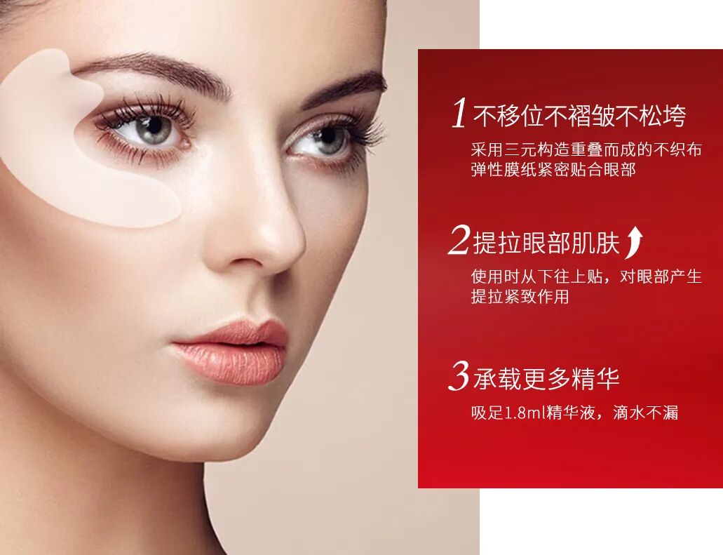 另外,对于膜布的选择,赛美也在精挑细选后,采用了肤感更好的不织布弹性膜纸,具有超强精华承载力的同时采用三元构造重叠而成,科学弧度设计更贴合更舒适,自然提拉紧致眼部,久敷不拔干。