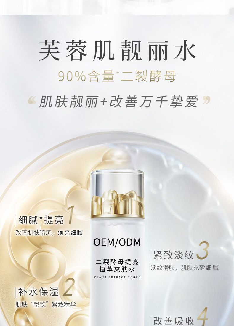 紧致淡纹细腻提亮补水保湿爽肤水加工 二裂酵母爽肤水oem代加工
