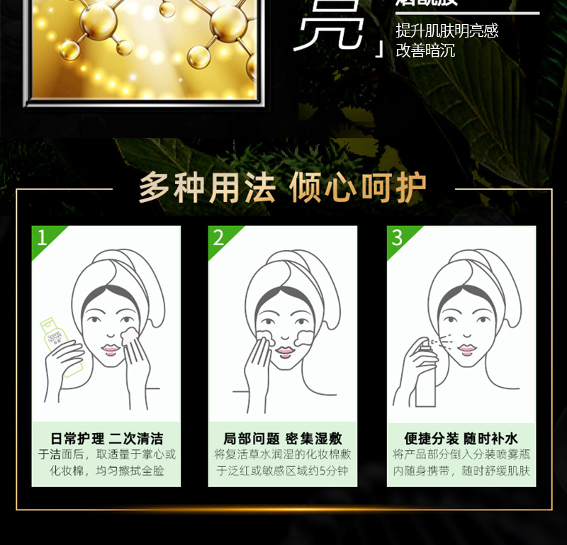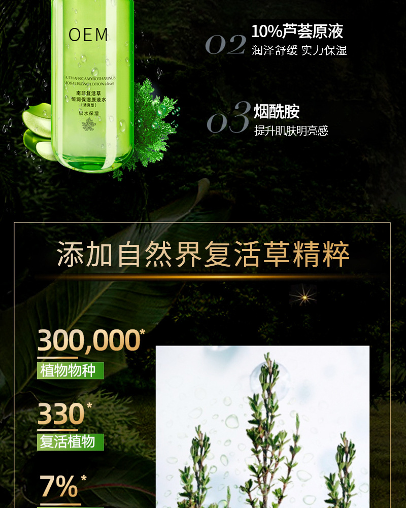 复活草舒缓修护爽肤水oem化妆品odm 保湿紧致原液精华水oem代加工