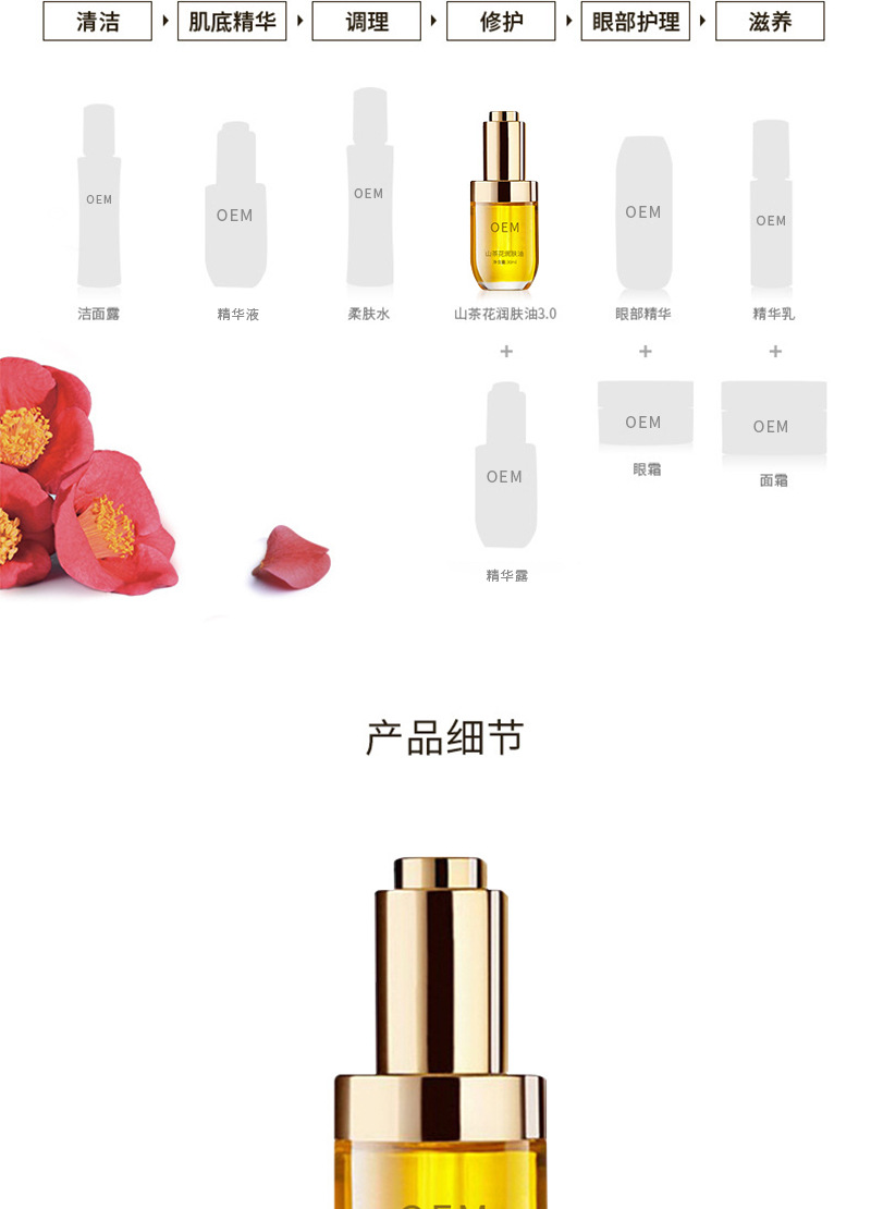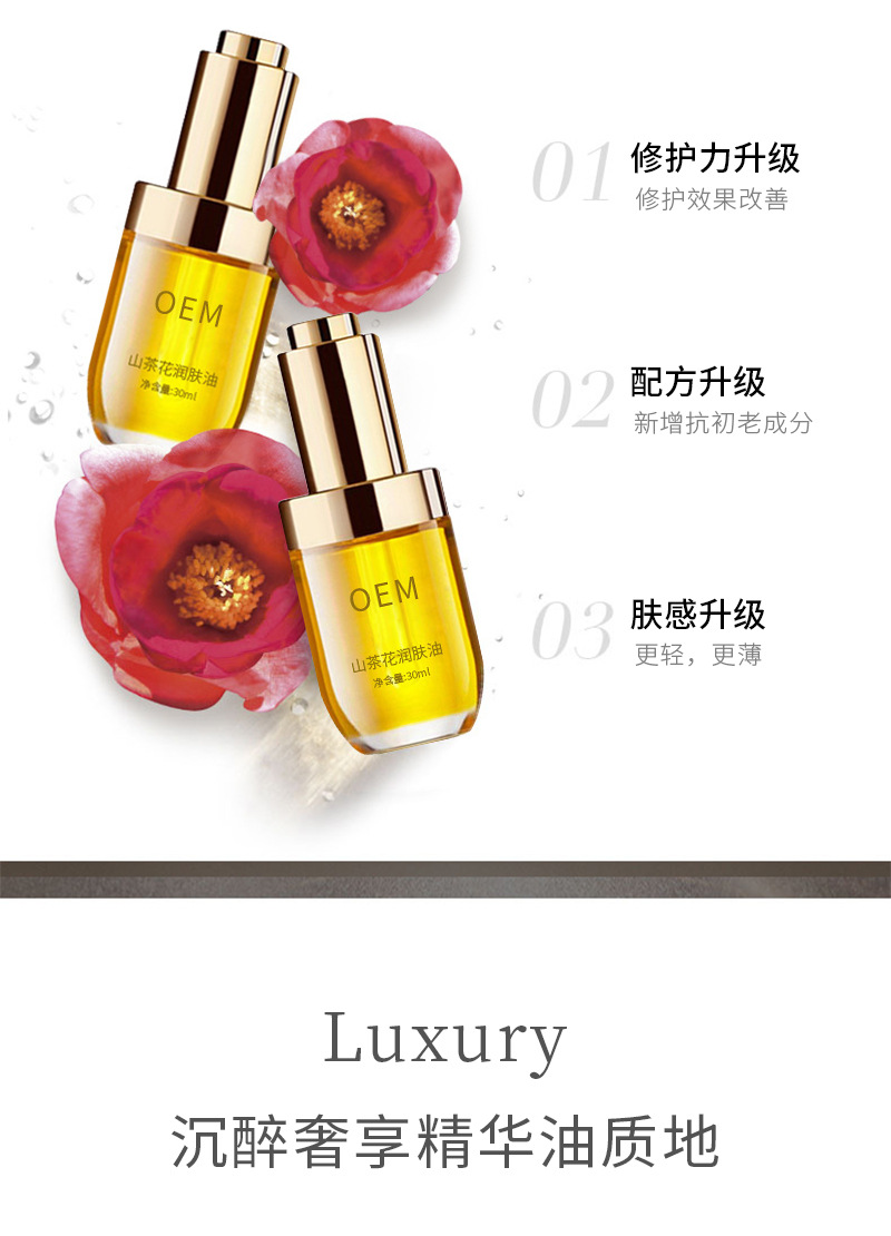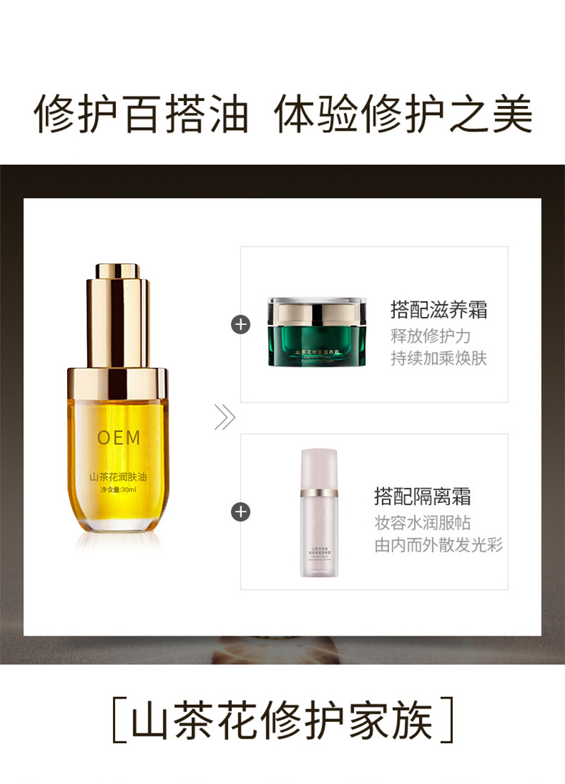 保湿滋润抗初老精华油odm贴牌化妆护肤品oem 山茶花润肤油oem加工