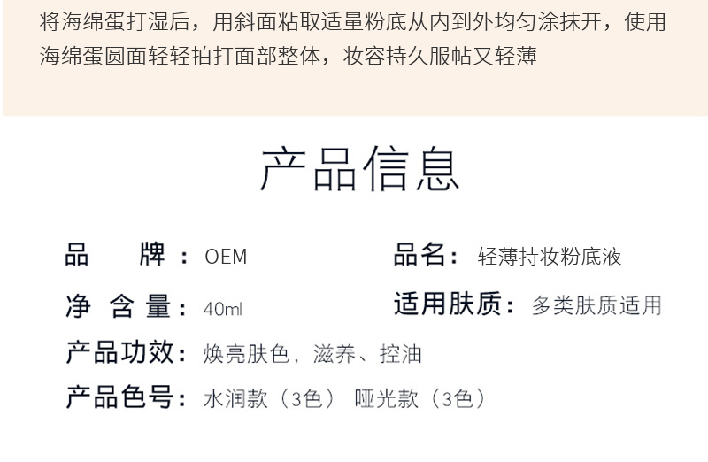 持妆粉底液oem代加工控油不卡粉遮瑕粉底oem定制 BB霜odm贴牌工厂