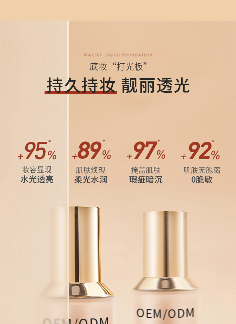 粉底液oem代加工 化妆品oem 遮瑕隐毛孔持久持妆粉底液贴牌定制