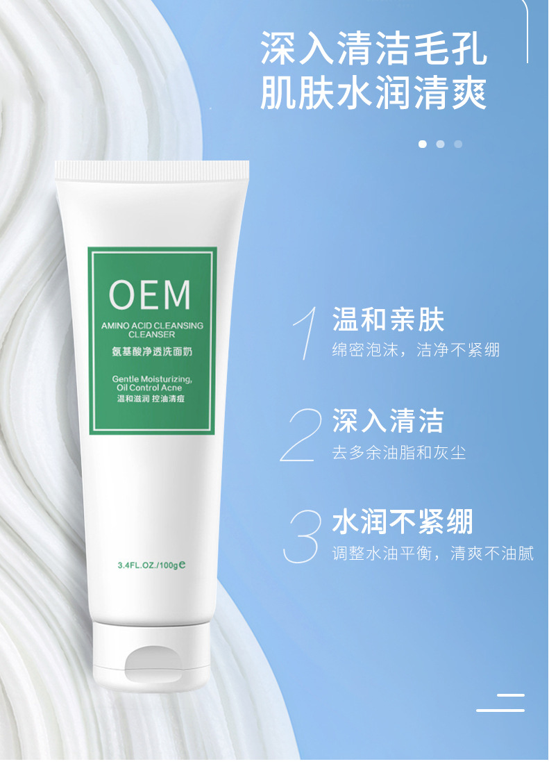 氨基酸净透洗面奶oem 化妆护肤品代加工 洁面乳odm贴牌定制工厂