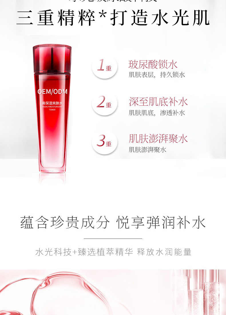 高保湿爽肤水oem代加工 滋润光泽弹润柔肤水加工 紧致保湿水oem