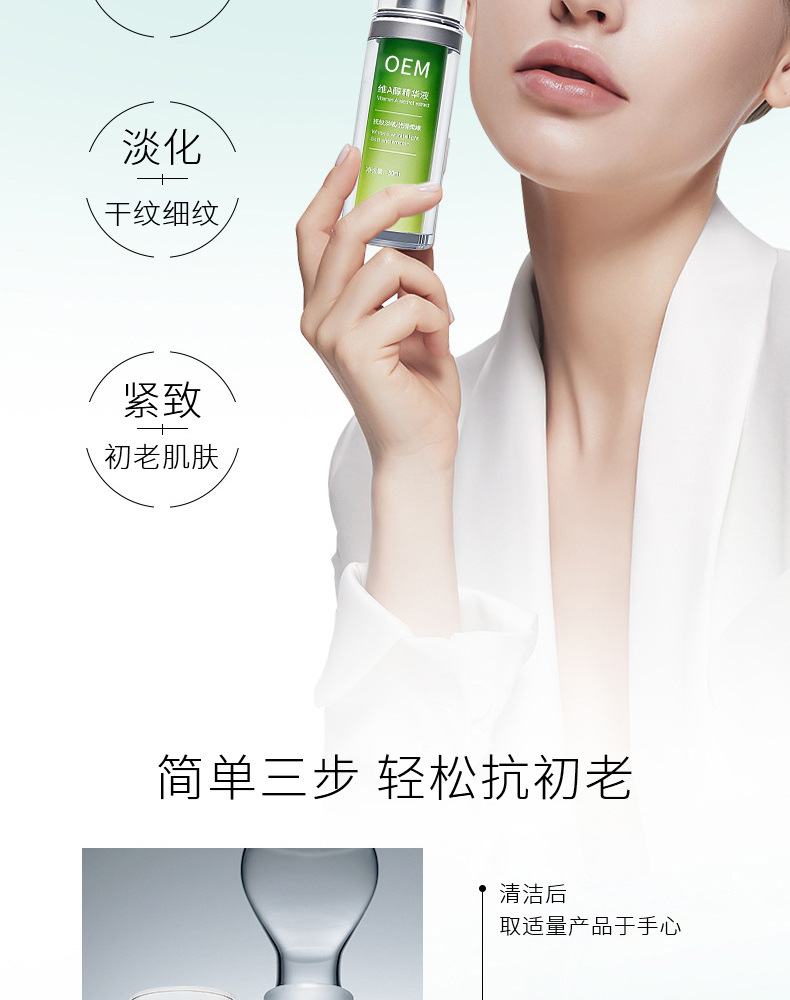 A醇视黄醇精华青春定格液oem代加工紧致淡纹早C晚A精华液原液加工