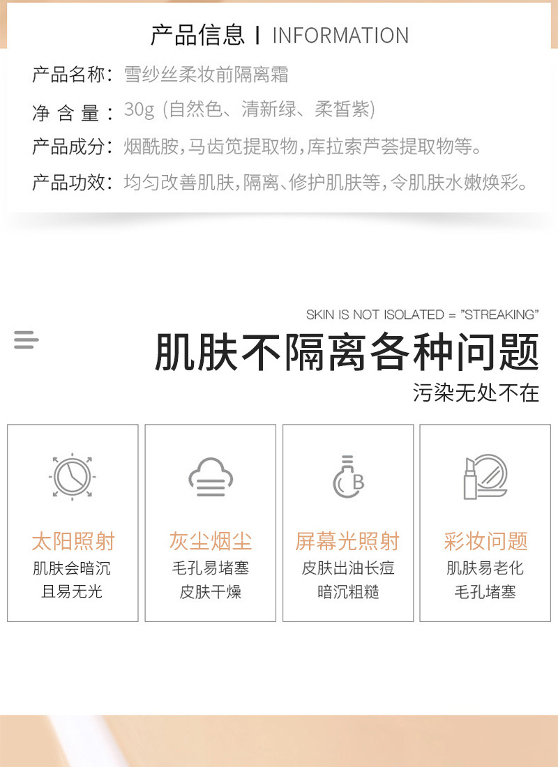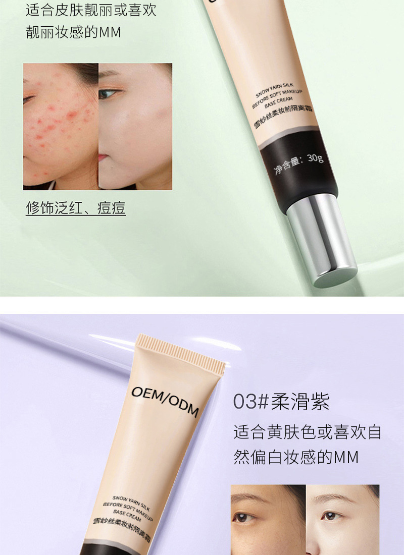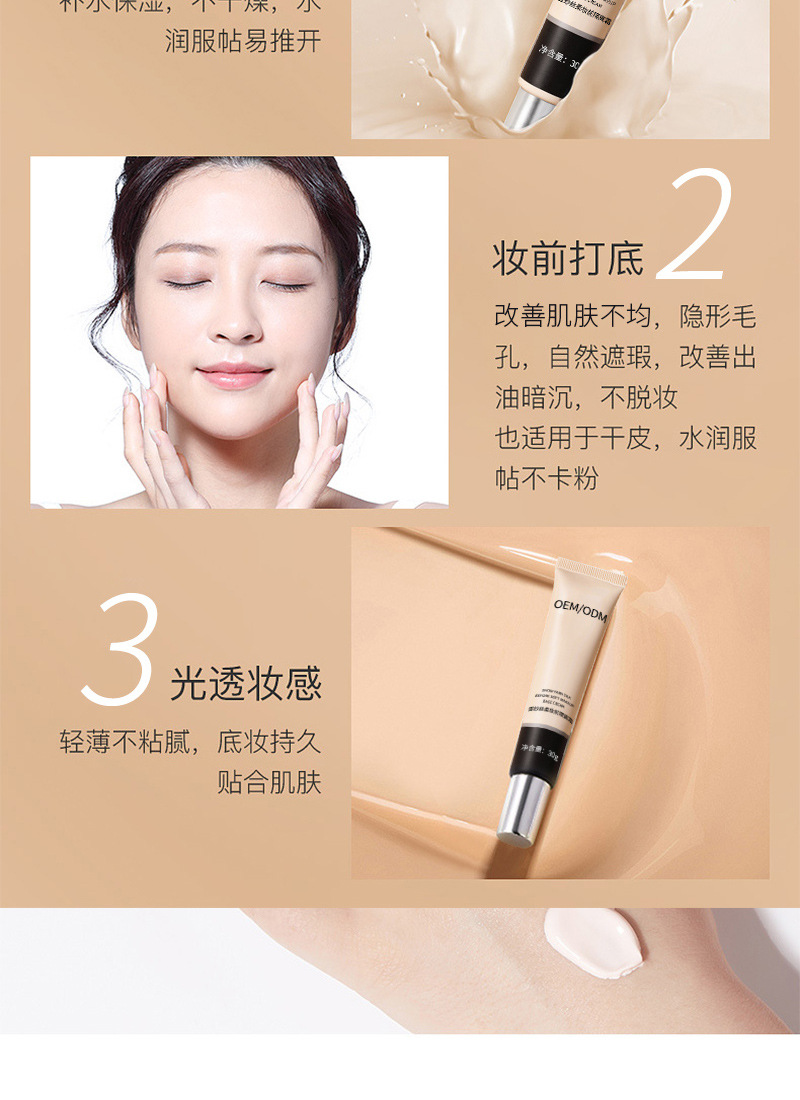 妆前隔离乳oem代加工 持妆控油隔离霜odm定制贴牌 化妆护肤品工厂