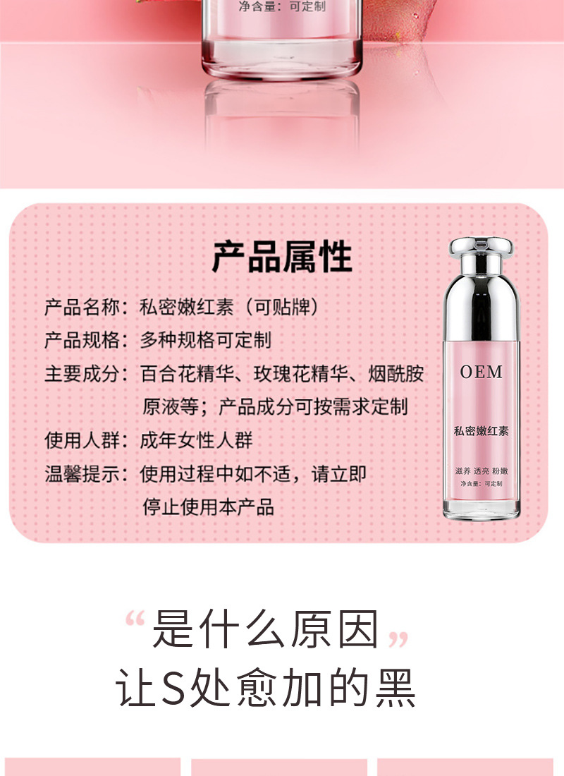 嫩红素代加工贴牌 女性私密乳晕嫩红精华私处护理黑色素嫩红素oem
