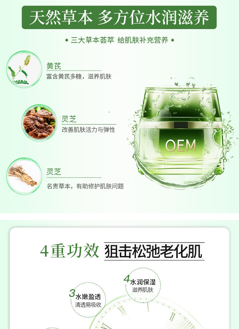 草本滋养面霜oem代加工紧致弹润保湿水乳素颜面霜odm贴牌定制工厂